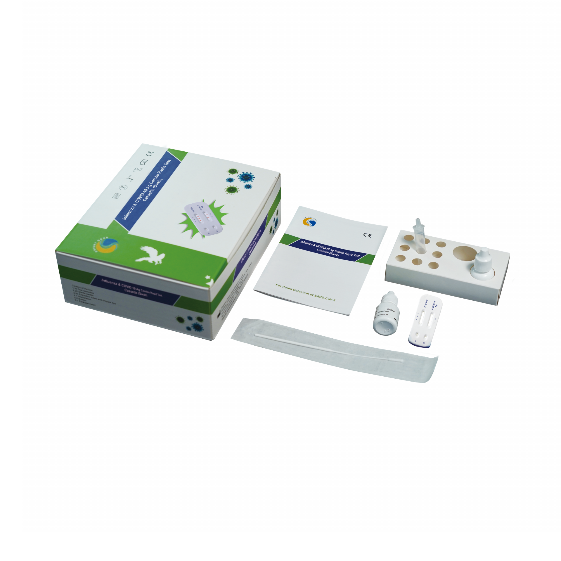 Detta är ett snabbt 4-i-1 kombinationstest från Orientgene för samtidig detektion av Influensa (Flu A + B)COVID-19 (SARS-CoV-2)RSV (Respiratory Syncytial Virus) och Adenovirus (Adeno) antigen. Testet är ett lateralt flödes immunokromatografiskt snabbtest (nasalt swab-test) som ger resultat inom 15 minuter. Det är avsett för professionell användning eller hemmabruk vid screening av vanliga luftvägsvirus som orsakar influensaliknande symtom.